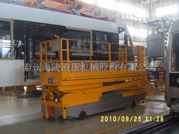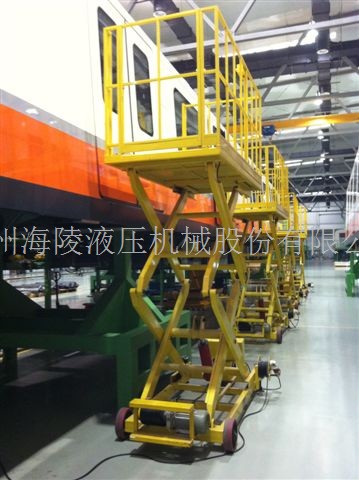500KG剪叉式液壓升降平臺應用于中車南寧軌道交通