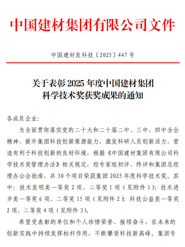 要聞速遞 | 蘇州非礦院榮獲中國建材集團科學技術進步獎