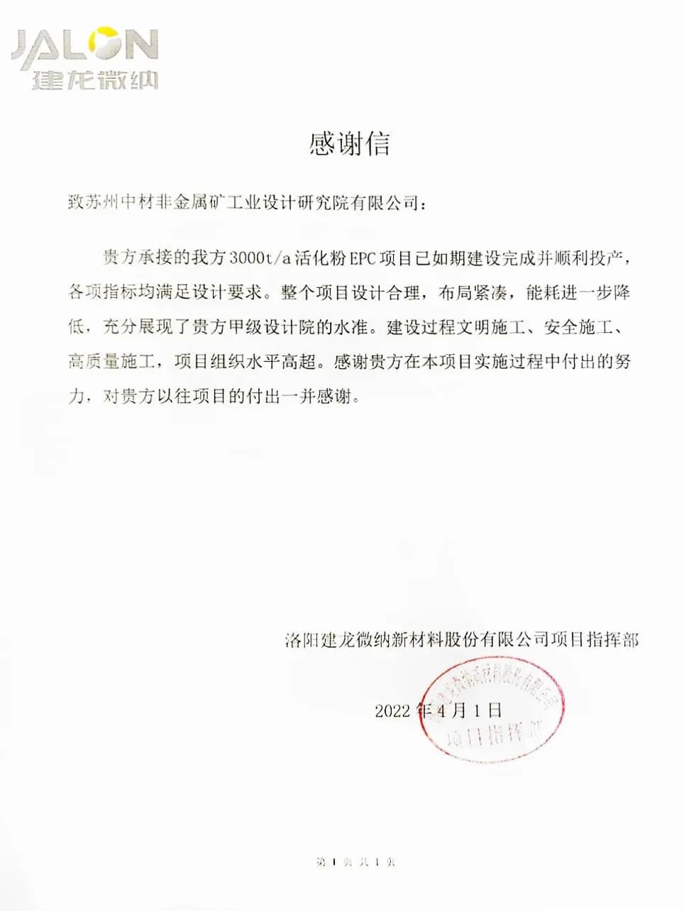喜報頻傳獲佳績,砥礪奮進正當時。近日,蘇州非礦院提前10天完成調試交付任務,喜獲業主建龍微納感謝信!......