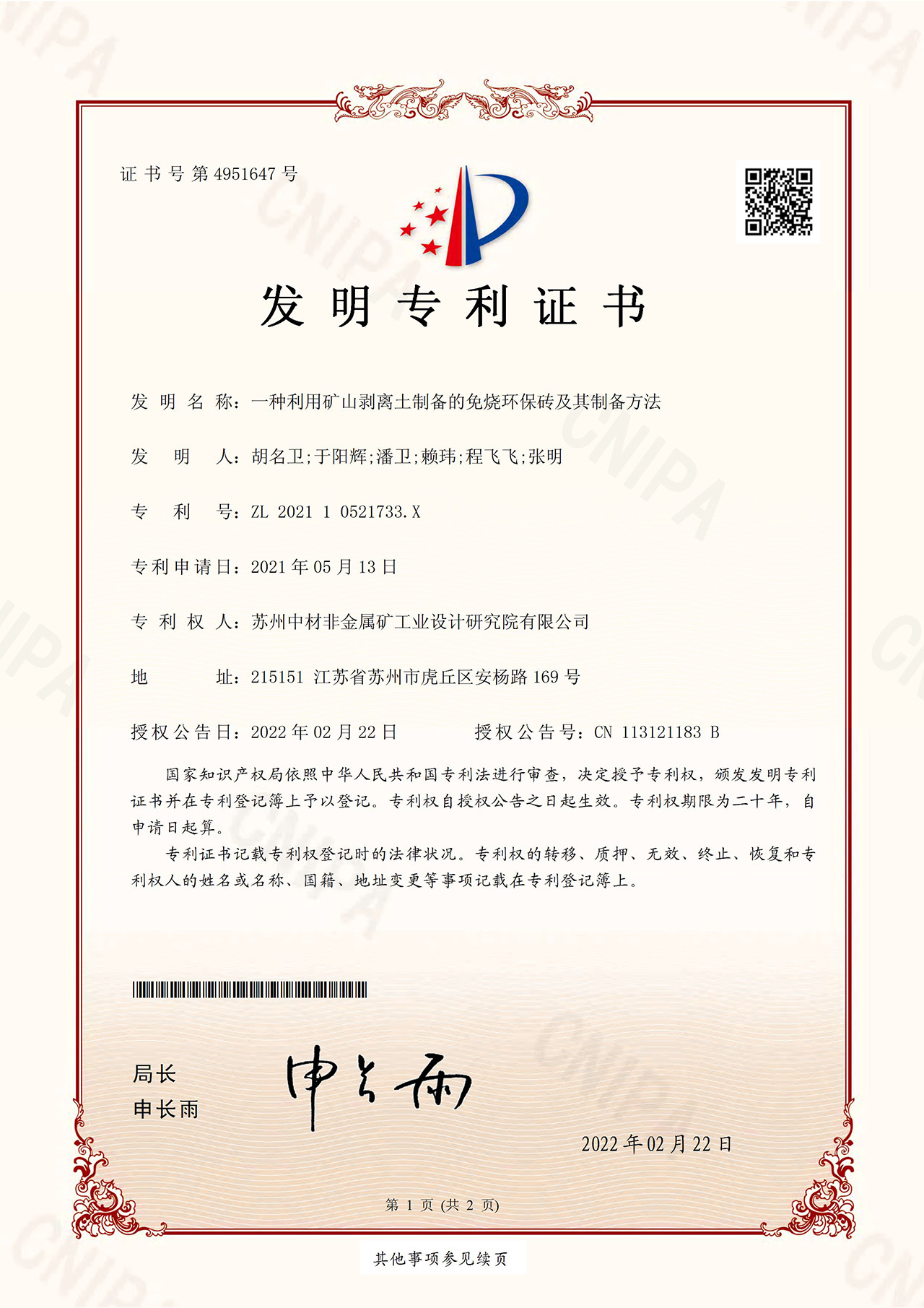 公司持續加大研發投入強度,在國家工程技術研究中心的研發平臺下,年度研發投入占營業收入超7%,獲批了國家級博士后工作站1個,在站博士后研究員2名。公司在非金屬礦物加工技術、礦物材料產品開發、關鍵裝備開發、規模化加工技術及裝備集成等方面擁有自主知識產權專利40余項。