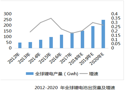 從全球鋰電池生產(chǎn)總量看,自2010年以來,全球鋰電池總產(chǎn)量年均增長速度在25%以上,2016年全球鋰電池總出貨量達到115.4Gwh,較上年同比增長21.1%。 預計2020年,全球鋰電池出貨量將達到265.7Gwh,是2016年的2.5倍。