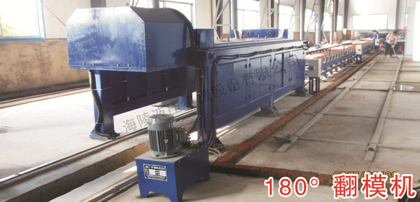 1. 翻轉(zhuǎn)裝置:用于將混凝土構(gòu)件翻轉(zhuǎn),以便進(jìn)行脫模操作。它通常由液壓缸或電動(dòng)機(jī)驅(qū)動(dòng),可以旋轉(zhuǎn)一定角度,將混凝土構(gòu)件從水平位置翻轉(zhuǎn)到垂直位置。